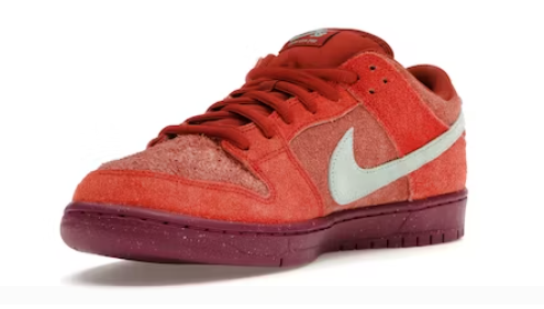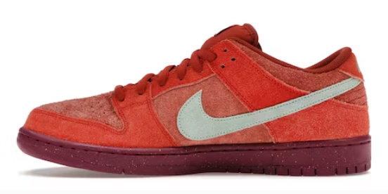 The Nike SB Dunk Low Mystic Red Rosewood is crafted predominantly from plush suede, exuding a strong retro vibe while merging Mystic Red, Emerald Rise, Rugged Orange, and Rosewood into a distinctive and harmonious color scheme that combines the finest attributes of each shade.